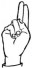 На ћирилици написано АНТОНИНА ЛАПЧЕВИЋ састоји се из 16 слова [?]. Исписано ћириличном једноручном азбуком за глувонеме: